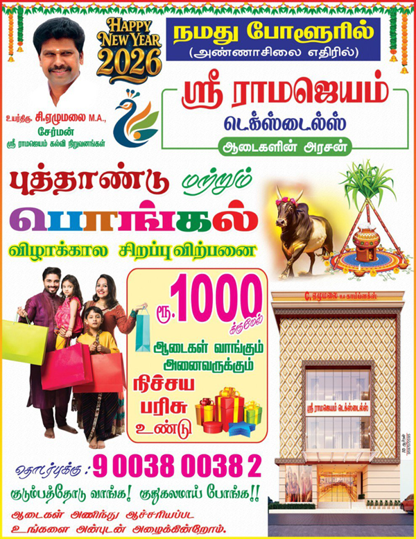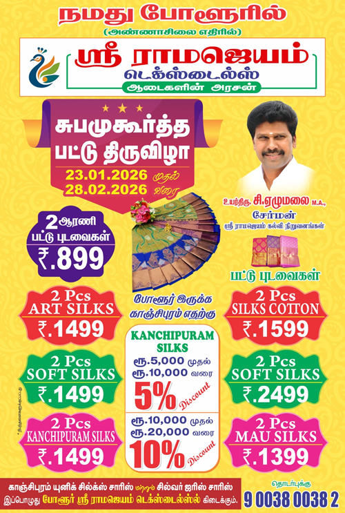 With a proud legacy of excellence through Sri Ramajayam Educational Trust, established in 2000, we have consistently upheld the values of trust, integrity, and quality across all our ventures. Continuing this tradition, we are delighted to introduce Sri Ramajayam Textiles, our newest initiative in Polur, dedicated to redefining family shopping experiences in the textile industry.